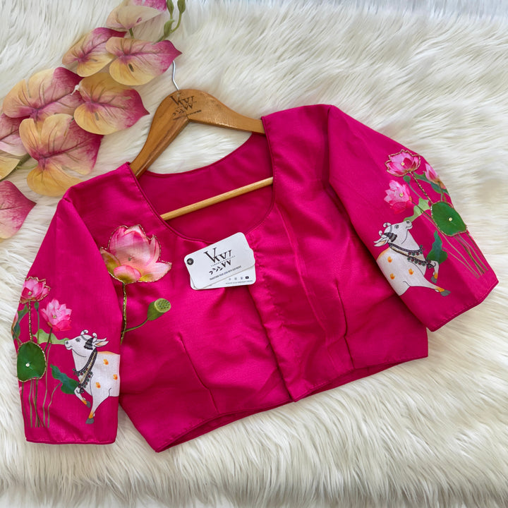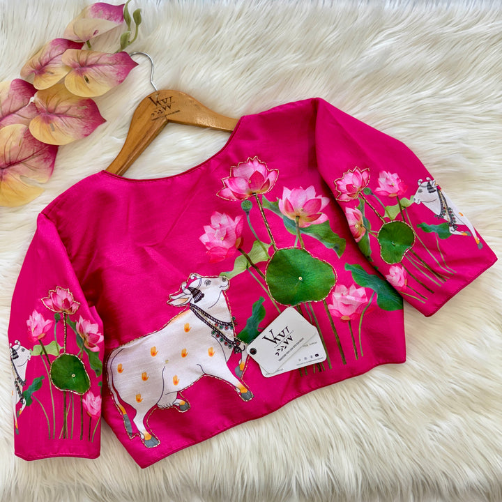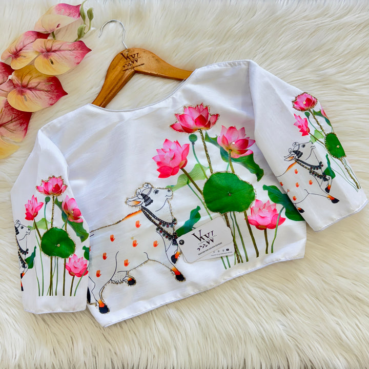 This product features a decent print paired with an antique handcrafted blouse. With this combination, you can elevate your style with a touch of vintage charm and quality craftsmanship. Perfect for those looking for a unique and timeless addition to their wardrobe.