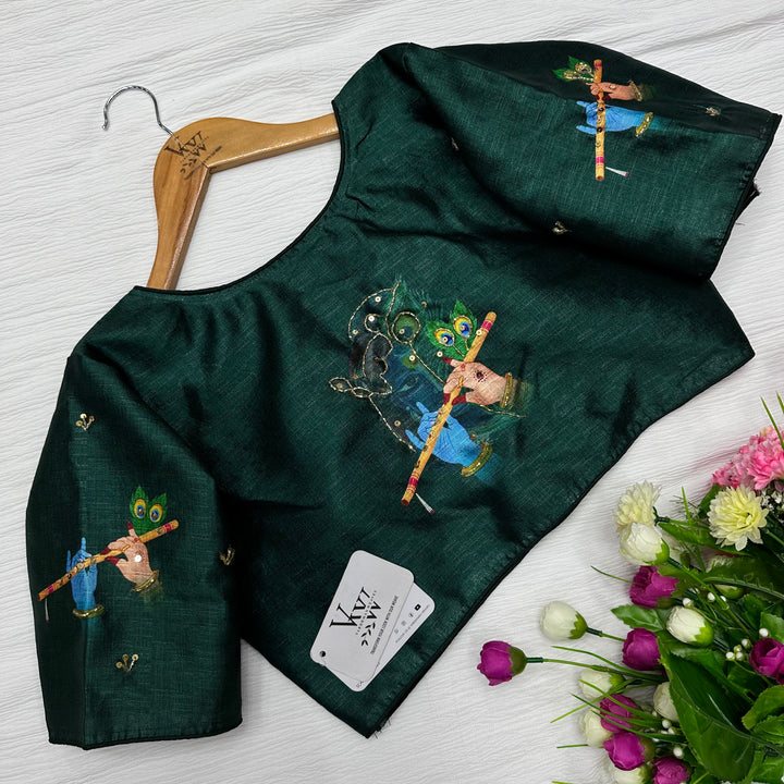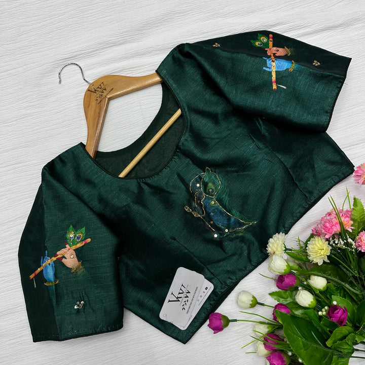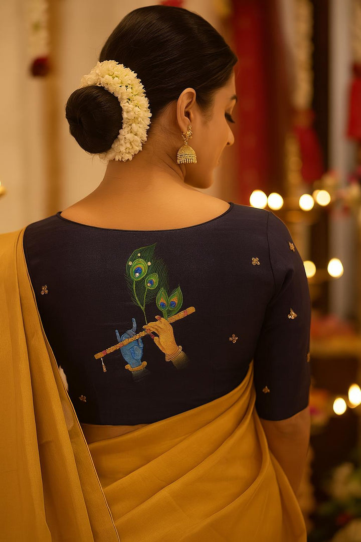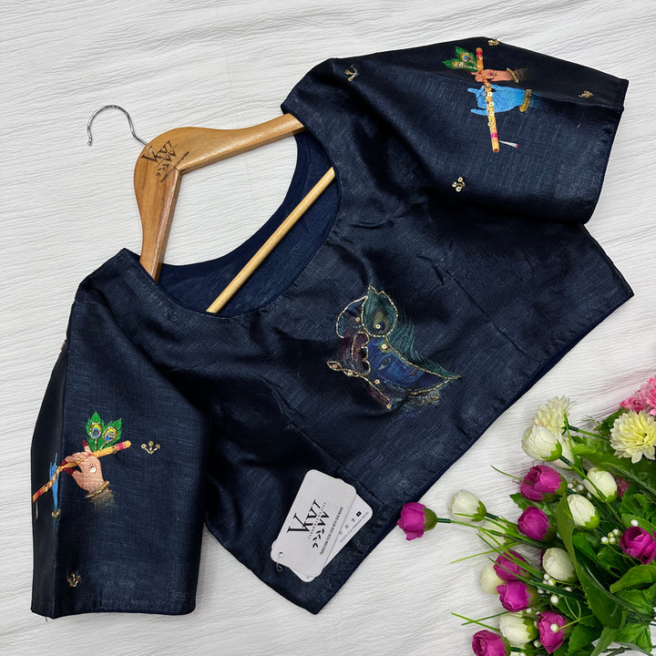 Expertly crafted with high-quality silk fabric, Vinitha features a stunning print and intricate antique handcrafted work. Elevate your wardrobe with this elegant blouse, perfect for any occasion. šš